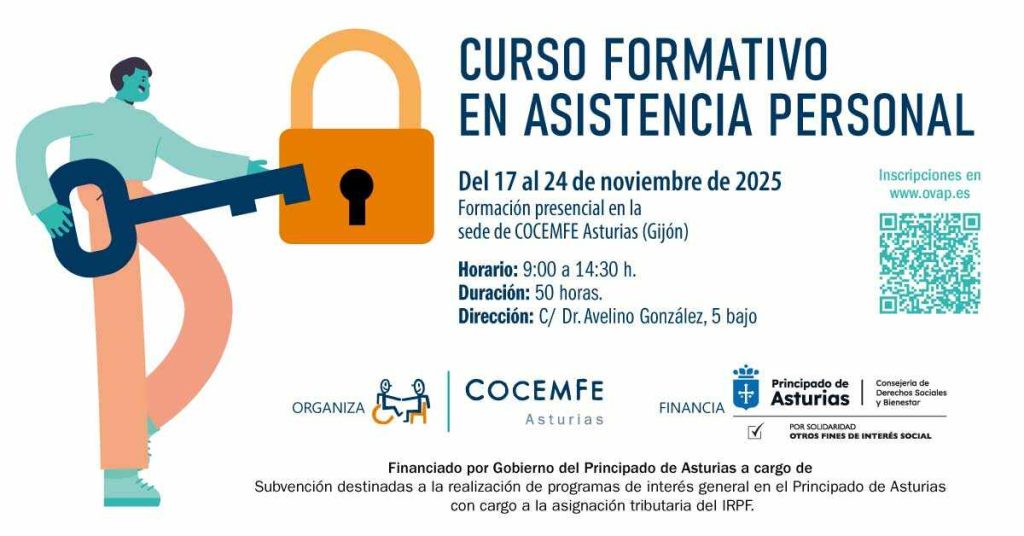 COCEMFE Asturias pone en marcha una nueva formación gratuita en Asistencia Personal, bajo el título “La Asistencia Personal: Llave para la Vida Independiente”. El curso
