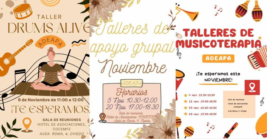 Adeapa se llena de actividades este mes de Noviembre. Van a realizar cuatro talleres de Musicoterapia en Avenido de Roma 4, Oviedo: 4 de Noviembre