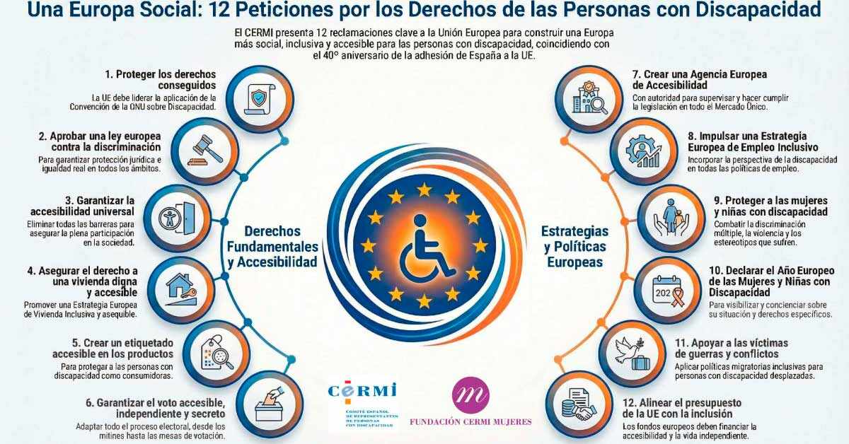 12 Peticiones por los Derechos de las Personas con Discapacidad. Aquí tienes las 12 reclamaciones clave para construir una Europa más inclusiva, accesible y justa.