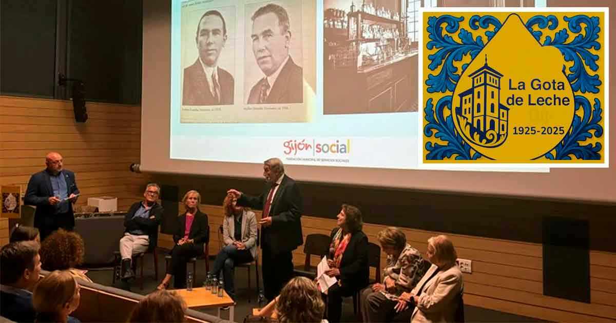 La Fundación de Servicios Sociales del Ayuntamiento de Gijón rindió homenaje en la Escuela de Comercio a tres entidades históricas de la ciudad que representan lo que la Gota de Leche simboliza: El Sanatorio Marítimo, el Hogar de San José y la Cocina Económica a las que se les entregó una réplica de artesanía del azulejo característico del edificio de La Gota de Leche.