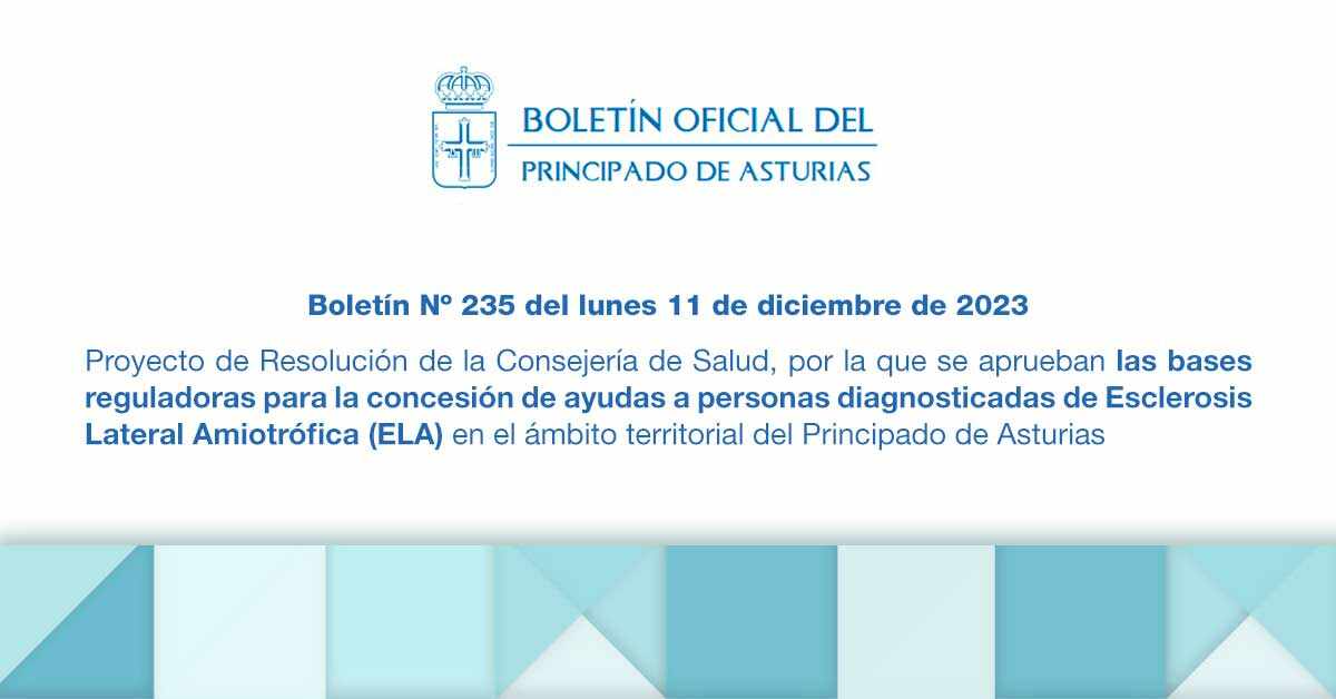 La Consejería de Salud del Principado de Asturias está en proceso de aprobar las bases reguladoras para otorgar ayudas a personas diagnosticadas con Esclerosis Lateral Amiotrófica (ELA) en Asturias.