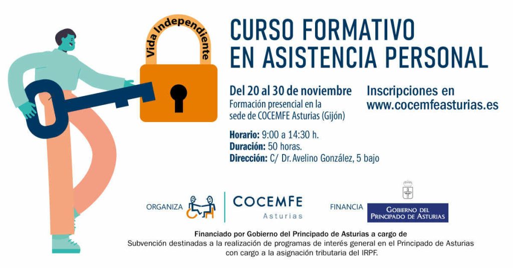 COCEMFE Asturias organiza una FORMACIÓN GRATUITA en ASISTENCIA PERSONAL bajo el título «La Asistencia Personal: Llave para la Vida Independiente» que tendrá lugar de forma